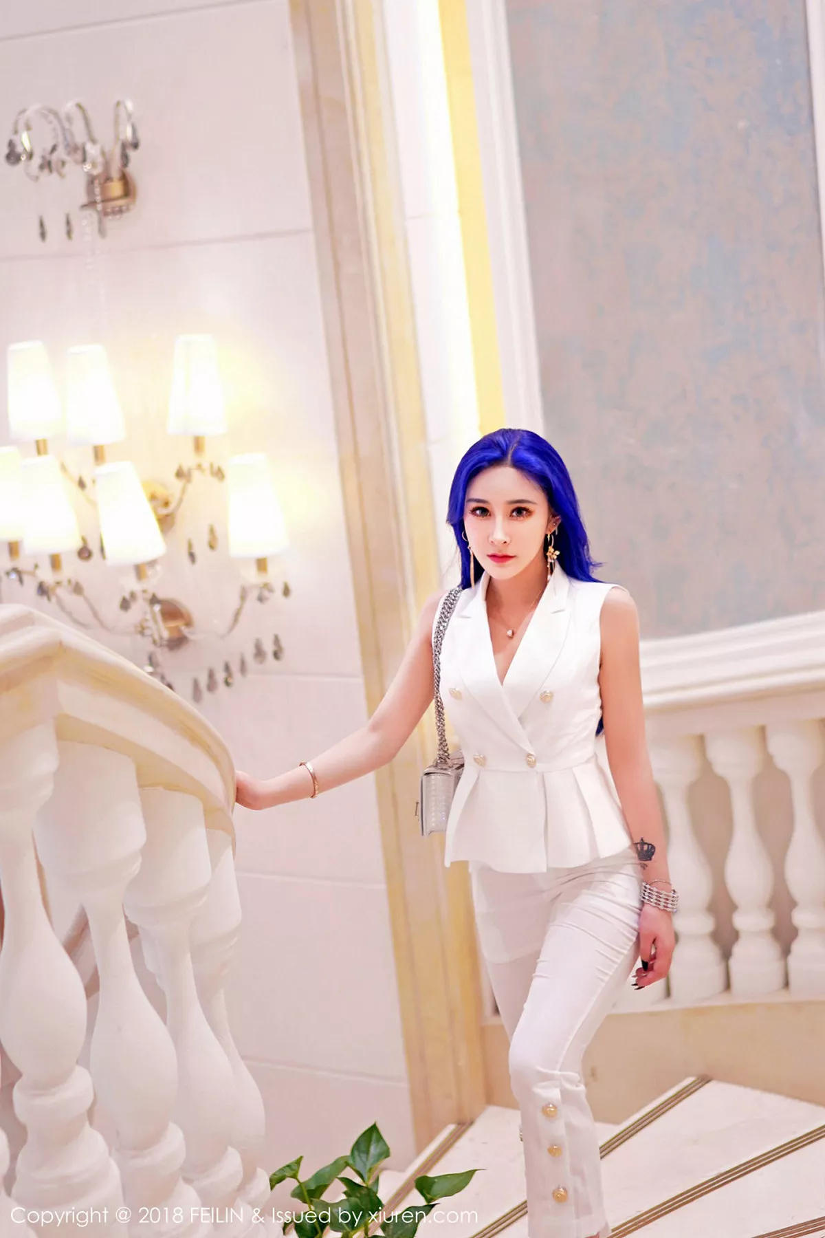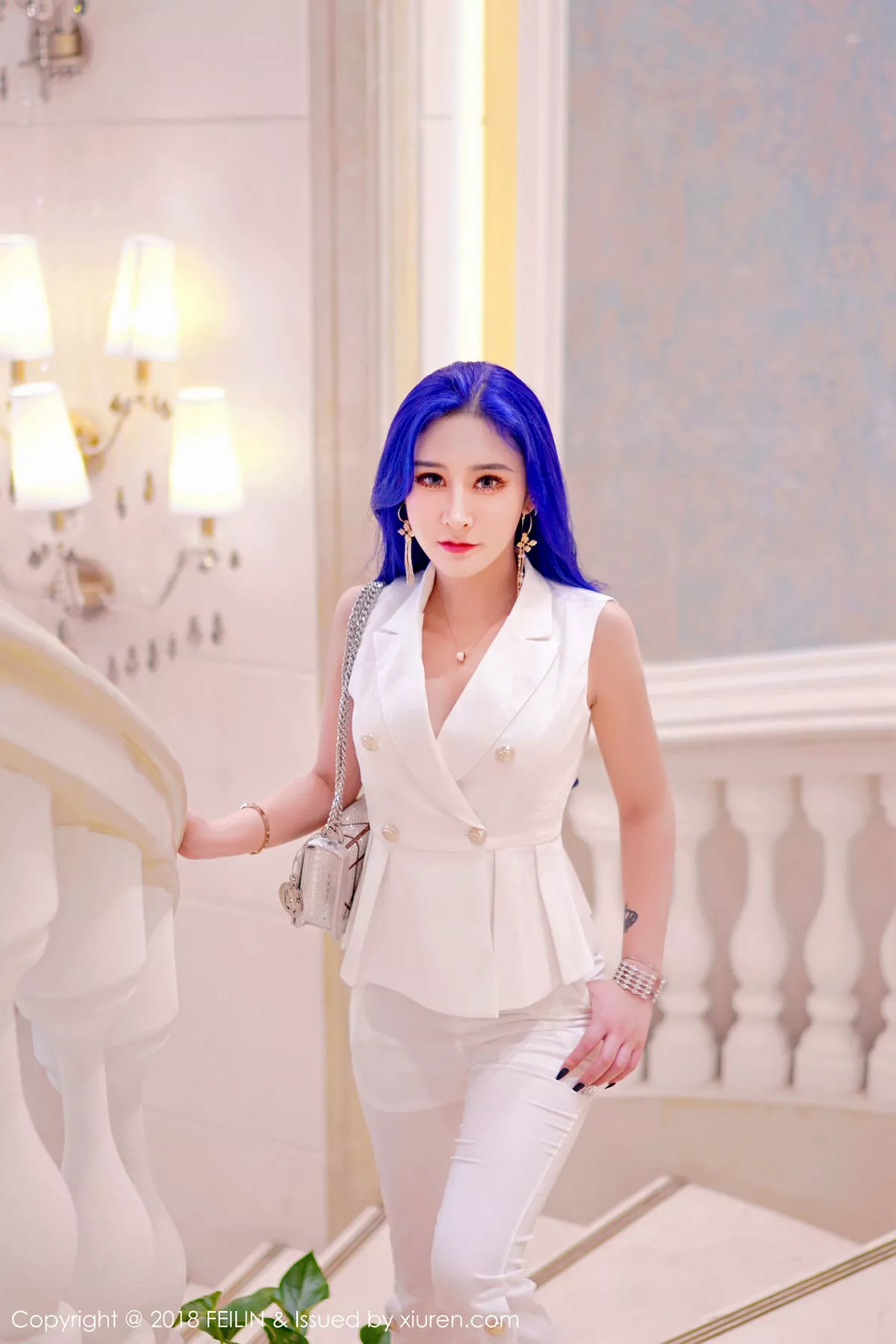 [FEILIN嗲囡囡] 2018.08.23 VOL.159 喵莫儿 模特@喵莫儿首套写真发布,引人瞩目的蓝色头发如同花蕊,精致如瓷娃娃的面容下偏偏有着一身凹凸别致的惹火身材,她的酒窝也是一种酒,可以让人醉,写真包含两套服饰共38P,希望大家喜欢和多多支持新人。喵莫儿,微博昵称莫爷啊,内地新晋平面模特,来自浙江杭州,最大特点是有着一头蓝色头发。语录:最好的家教:爱意扬在脸上,原则刻在心底 。。国内专业写真推广机构[FeiLin嗲囡囡]第159期喵莫儿完美身材惹火诱惑写真。